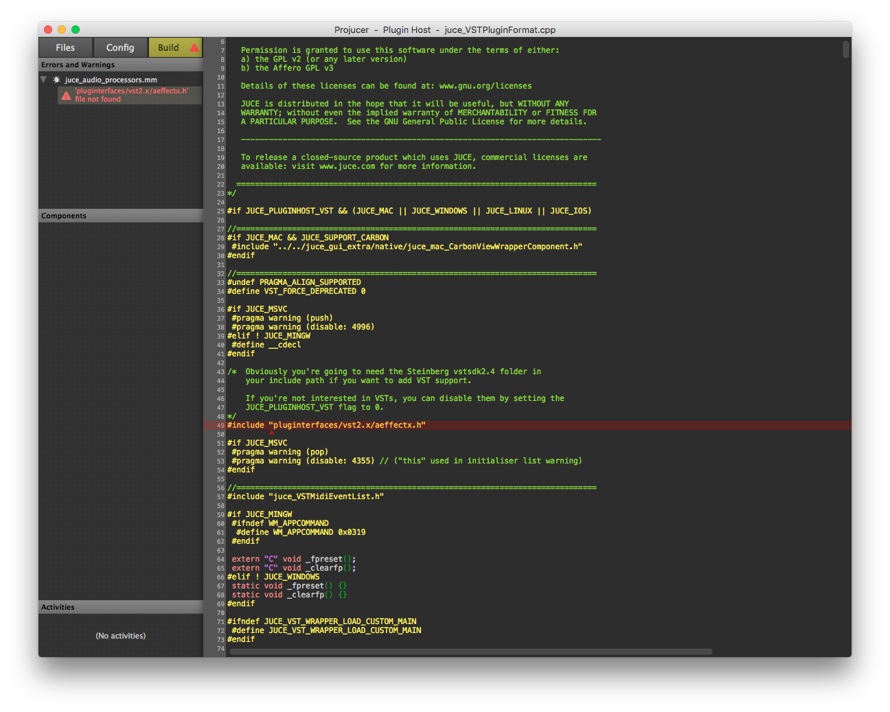 The audio plugin host example won’t compile using Projucer reporting “pluginterfaces/vst2.x/aeffectx.h” file not found.