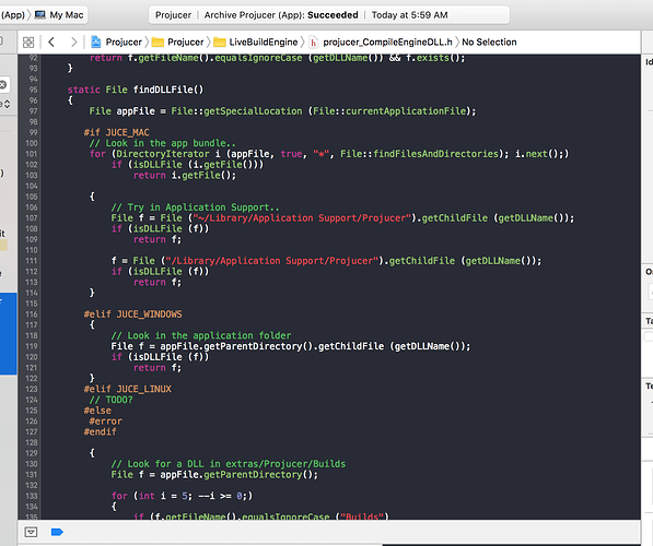 It’s fixed now. You can update to the newest tip and re-build the Projucer. If you have the DLL (JUCECompileEngine.dylib), you should now be able to live-build again with that Projucer.