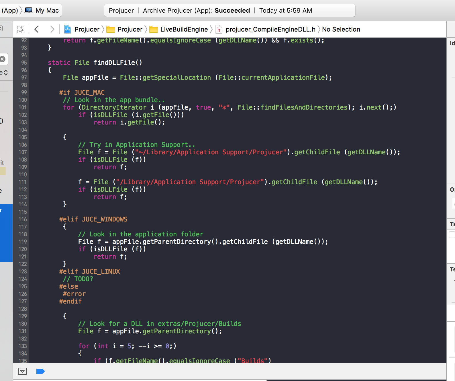 You can also change the path in projucer_CompileEngineDLL.h