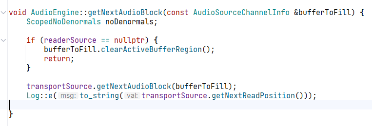 Values of the above variables: samplePerBlockExpected: 1920 processSpec->sampleRate: 48000 readerSource->getAudioFormatReader()->lengthInSamples: 9482112 readerSource->getAudioFormatReader()->bitsPerSample: 32
