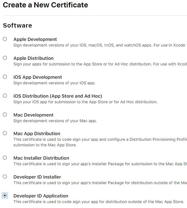 if you want to create an installer, eg a .pkg or your want to make an .dmg you need a “Developer ID Installer” certificate. if you use the whitebox Packages tool you can add it there and it will take care for the code signing of the package.