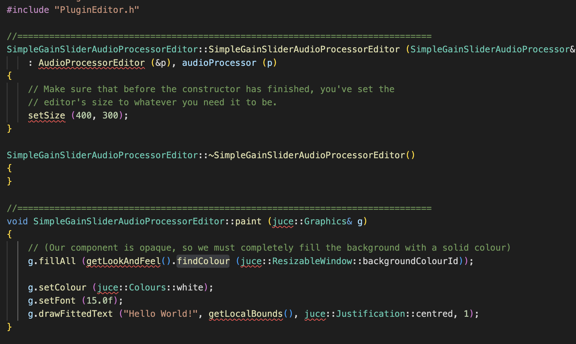 I’m trying to start a new JUCE project, but sadly, when I try to open the project folder in VSCODE, lots of errors appear. Some include ‘“AudioProcessorEditor” is not a nonstatic data member or base class of class “SimpleGainSliderAudioProcessorEditor”’ and ‘identifier “getLookAndFeel” is undefined’. Can anyone help?