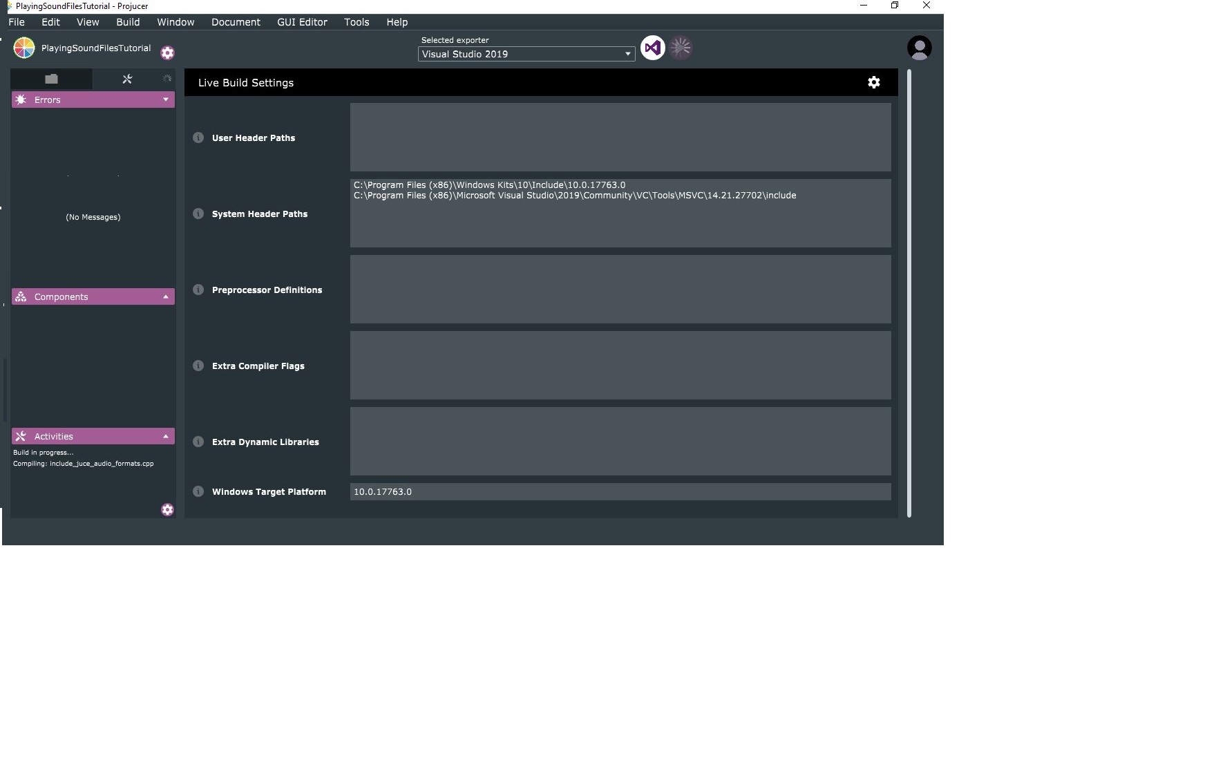 Working with Projucer Live Build on Windows 10 version 1903.
