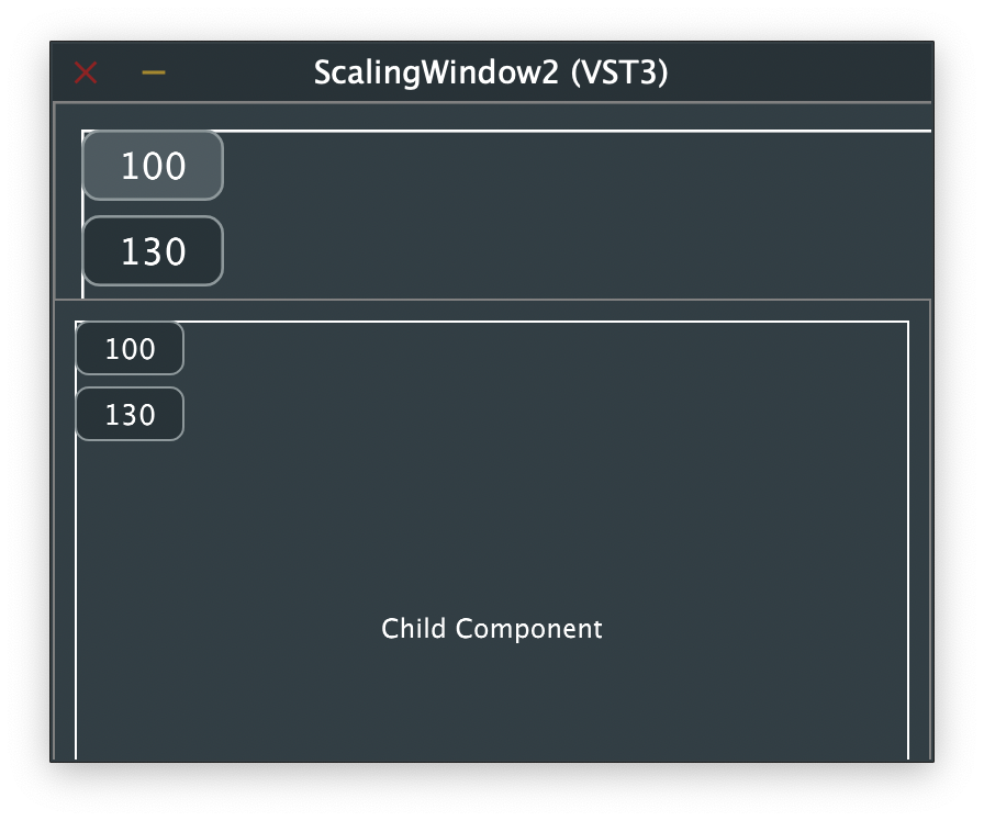 It becomes properly scaled once close and open the window. AU, vst2 and standalone app work properly.